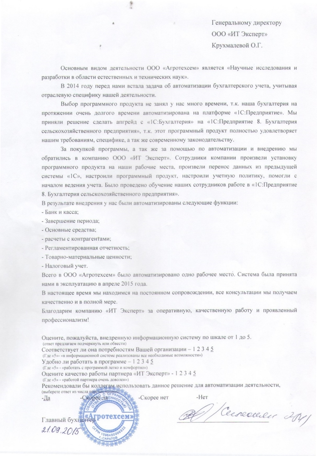 Основным видом деятельности ООО «Агротехсем» является Научные исследования и разработки в области естественных и технических наук.