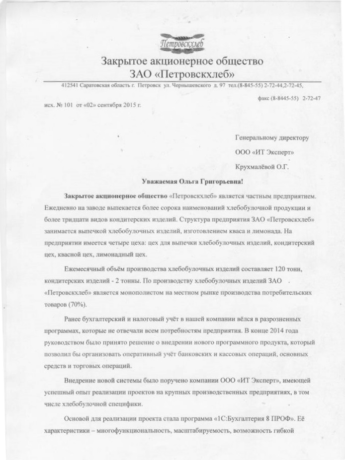 Закрытое акционерное общество «Петровскхлеб» является частным предприятием. Ежедневно на заводе выпекается более сорока наименований хлебобулочной...